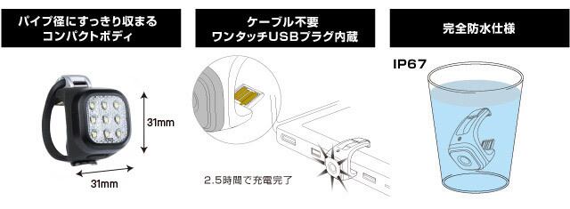 ハンドルバー径に収まるコンパクトデザインですが、視認性は500mと実用性も十分考慮させています。