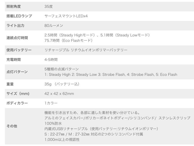 スポットで地面を照らせるEYEBALLERからどの角度でも認識できる広角セーフティライトMR CHIPSまで4種類の照射角でラインナップが展開されます。