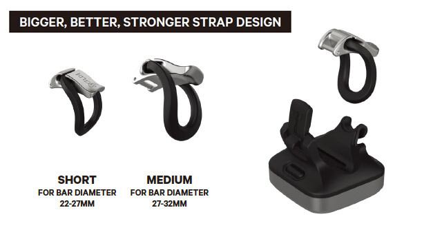 またストラップが工具要らずの交換式へと進化。リヤモデルには3種(ショート・ミディアム・ロング)のストラップが付属。ご使用のシートピラーに合わせて簡単に交換可能です。